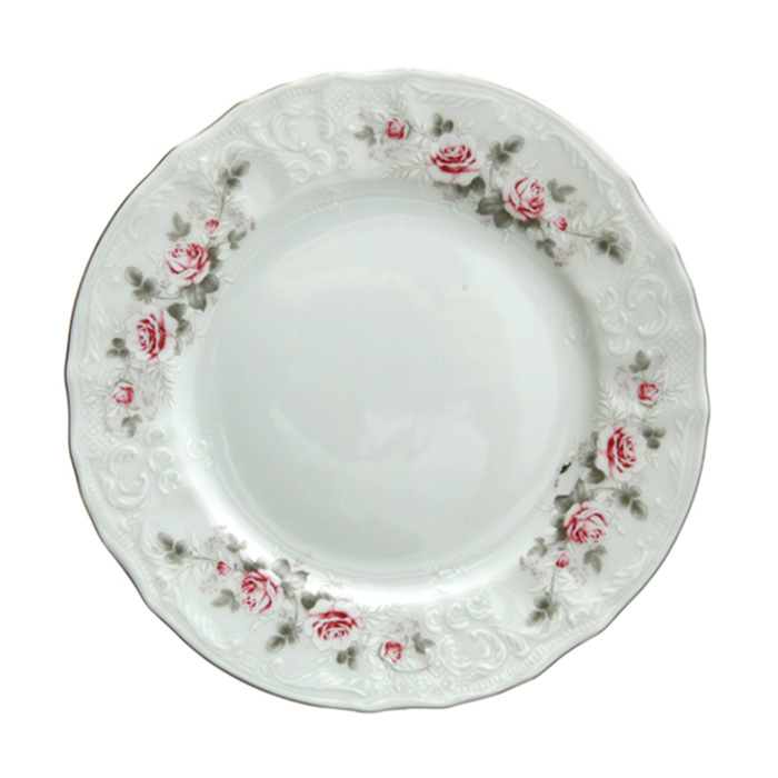 Отдельные предметы сервировкиТарелки → Набор тарелок 25 см «Бледные розы, отводка платина» (форма "Bernadotte")